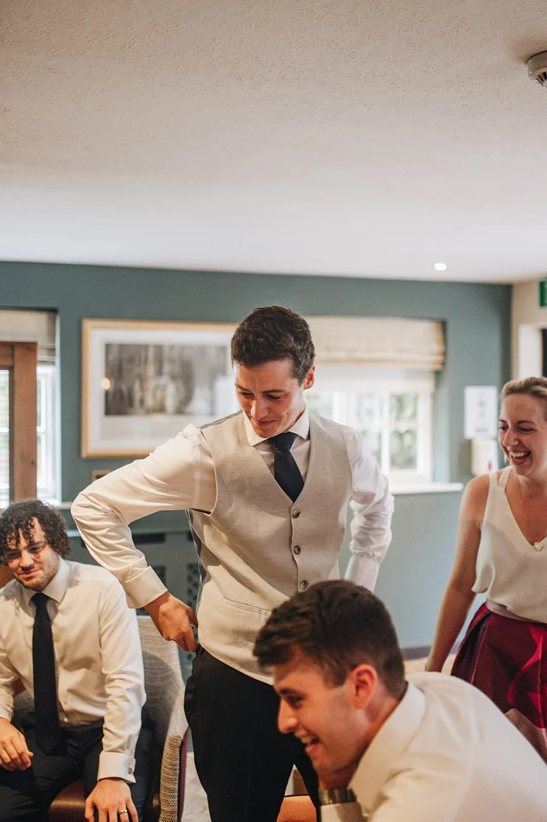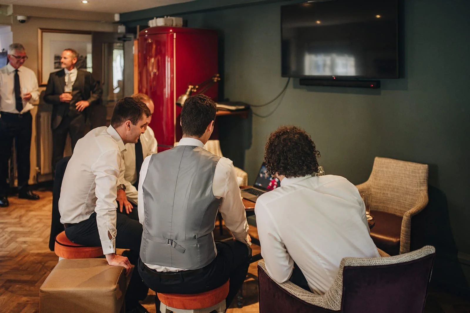David and the boys kicked off the day by watching a football match and having a pint to chill out at the local pub—a great idea in my view! Meanwhile, back at the Hall, watching Olivia's dad see his precious daughter for the first time in her wedding dress was a truly special moment.