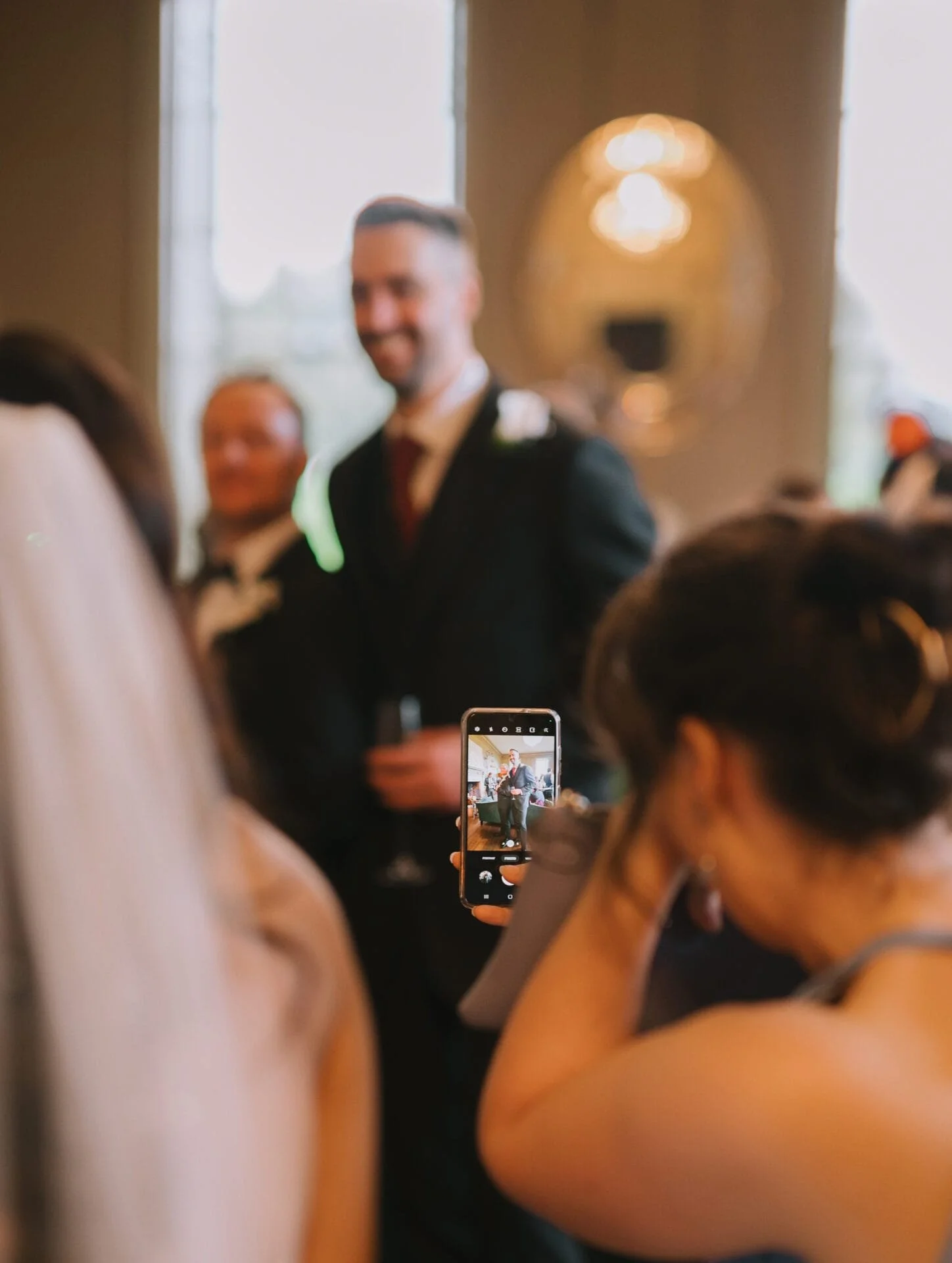 Erin and Scott chose to tie the knot indoors, surrounded by their closest friends and family. The grand windows let in the most beautiful natural light, which is an absolute dream for documentary wedding photography. It allowed me to capture all the subtle, candid moments—the nervous smiles, the happy tears, and the quiet glances—without needing to use intrusive flashes.
