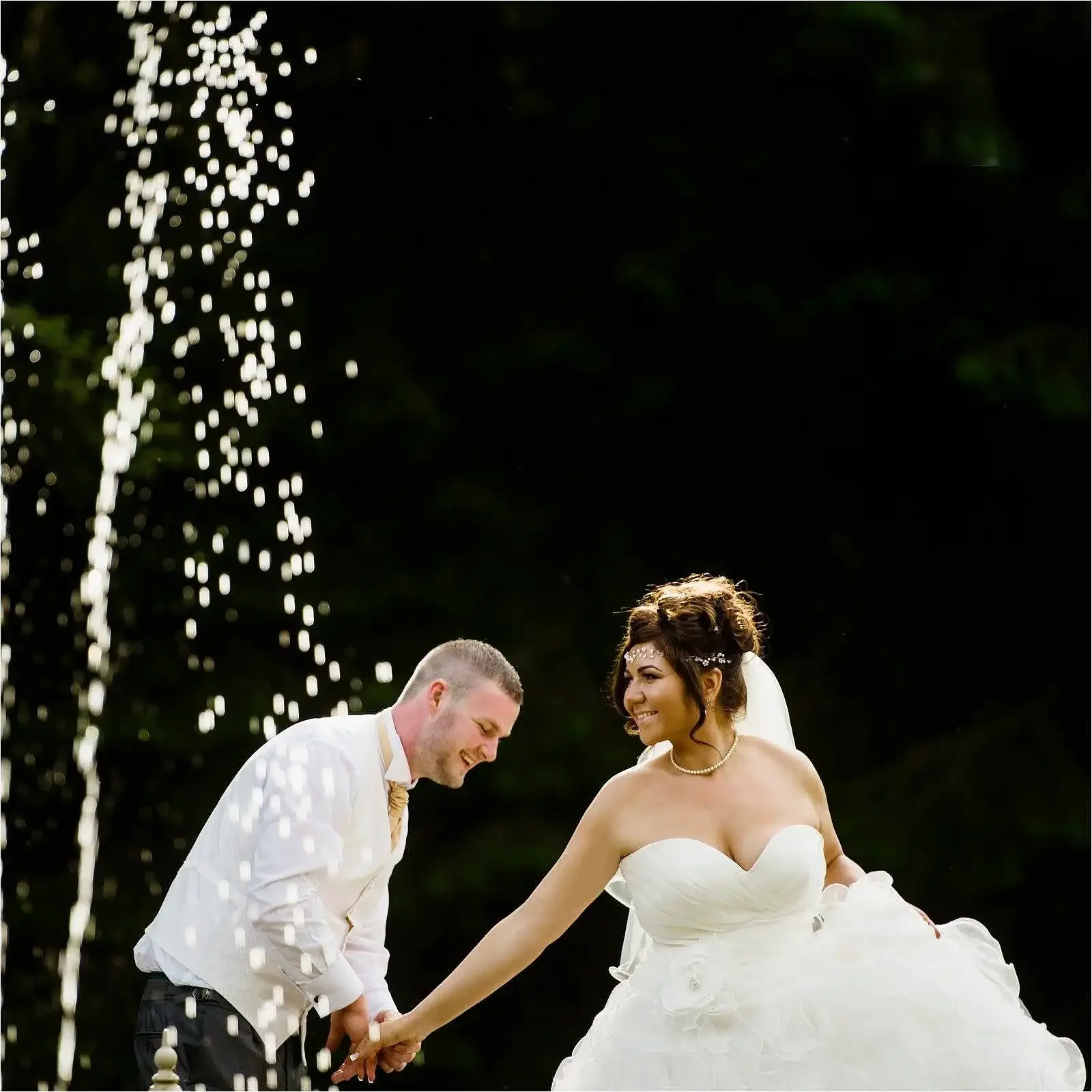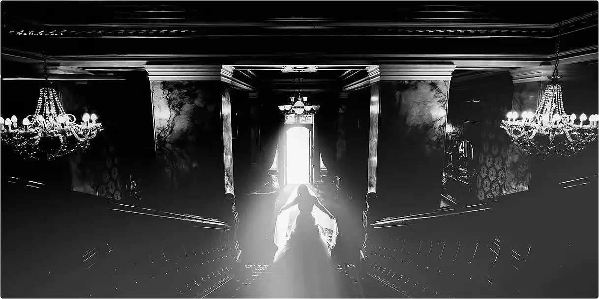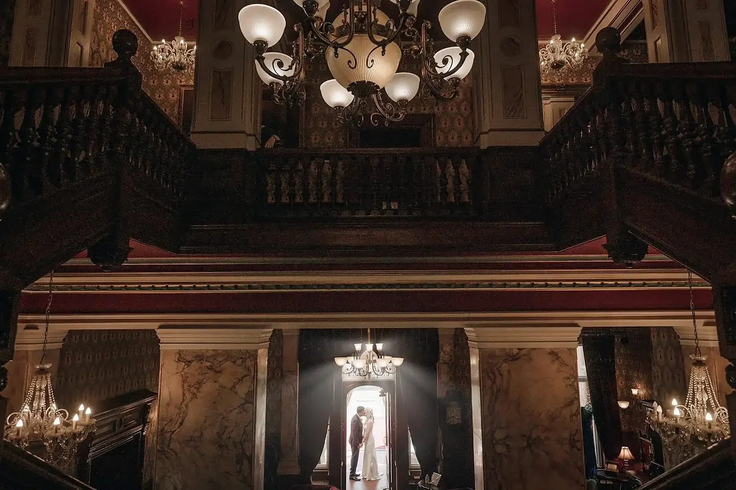 The Grand Oak Staircase. This is an absolute must-have. The carved wooden staircase and the stunning chandelier make for an incredibly elegant, classic portrait. It's also the perfect failsafe if it decides to rain!
